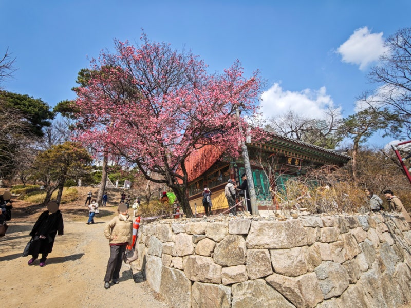 To find the red plum blossom tree, go past the Daeungjeon (Main Hall) and look to the left of the Yeonggak building.