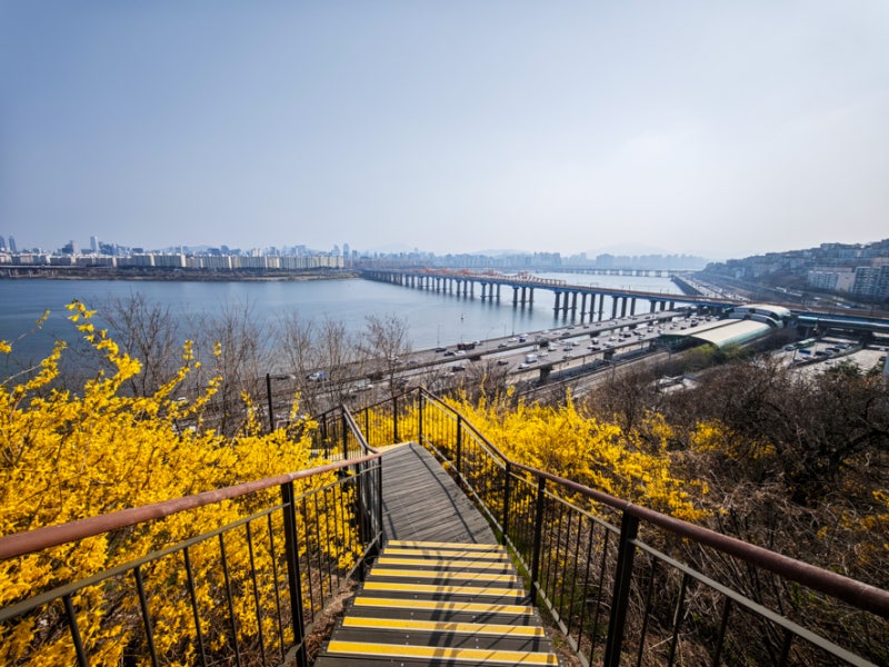 A river flowing through the city center, popular for walking and various festivals. Cheonggye Plaza has a photo-shoot point with a candlelight fountain and a large waterfall. Connects to Gwangjang Market, Dongdaemun Fashion Town, and DDP. Hosts the Seoul Lantern Festival in November.